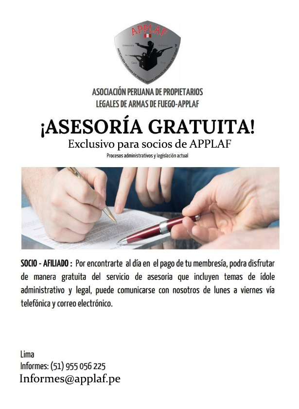 Ver másAPPLAF es una asociación civil sin fines de lucro que promueve la educación en el uso correcto, legal, seguro y responsable de las armas de fuego de uso civil así como defender el derecho de los propietarios legalmente registrados de armas de fuego en sus diferentes modalidades.